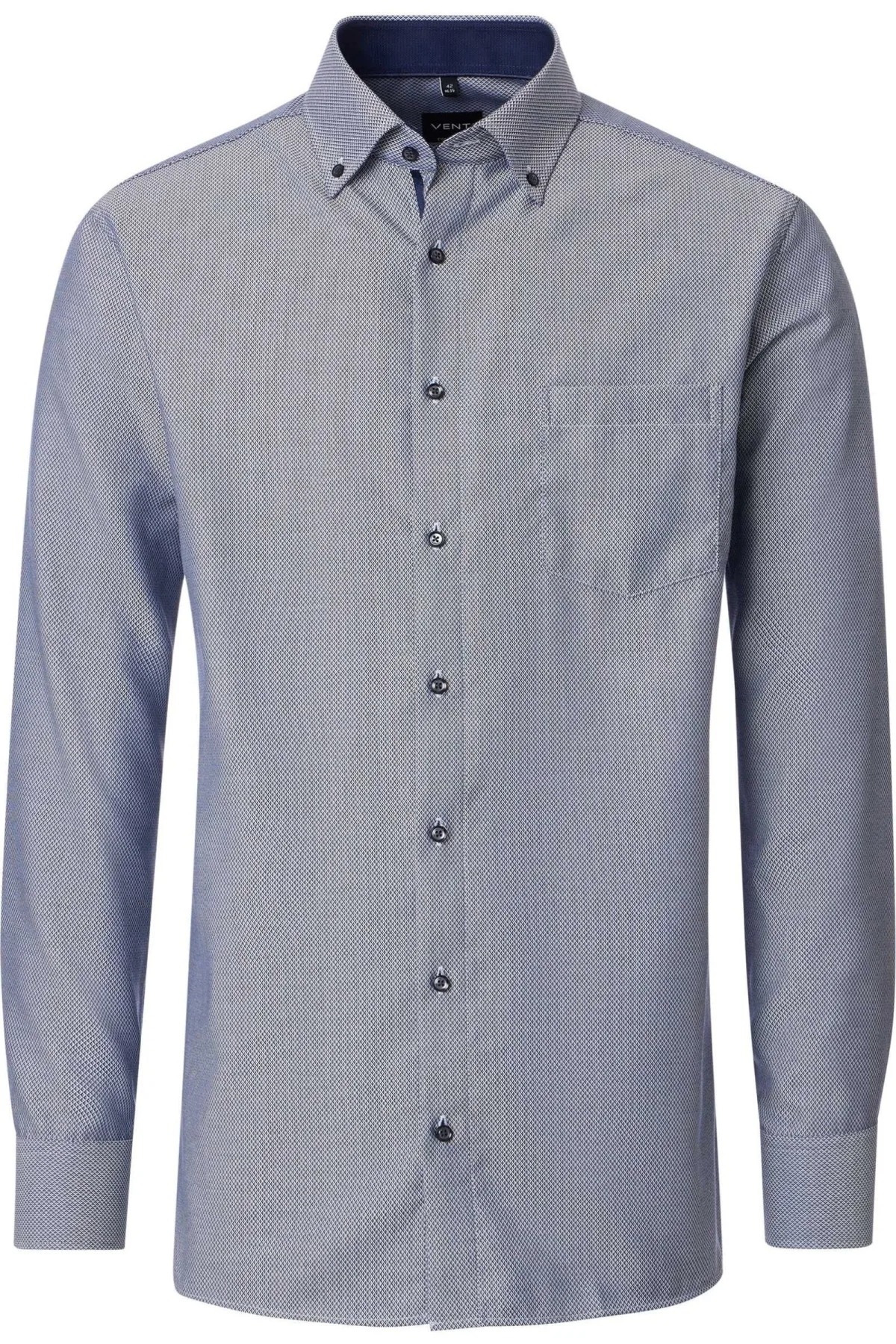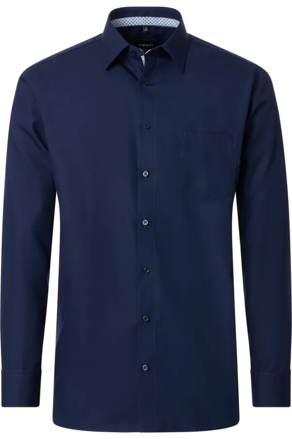 navy comfort fit overhemd Venti borstzak 100 katoen strijkvrij