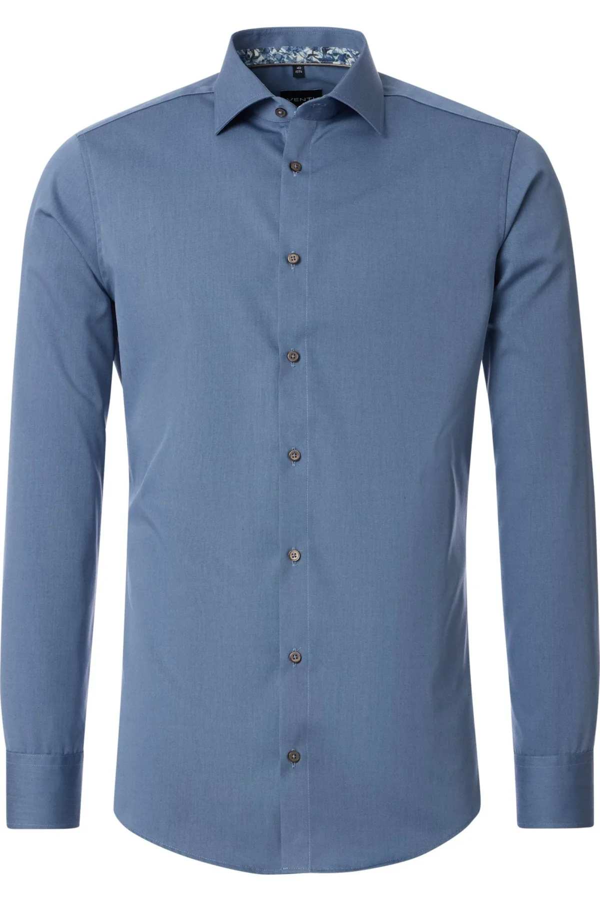 VENTI modern fit overhemd popeline blauw Strijkvriendelijk Boord