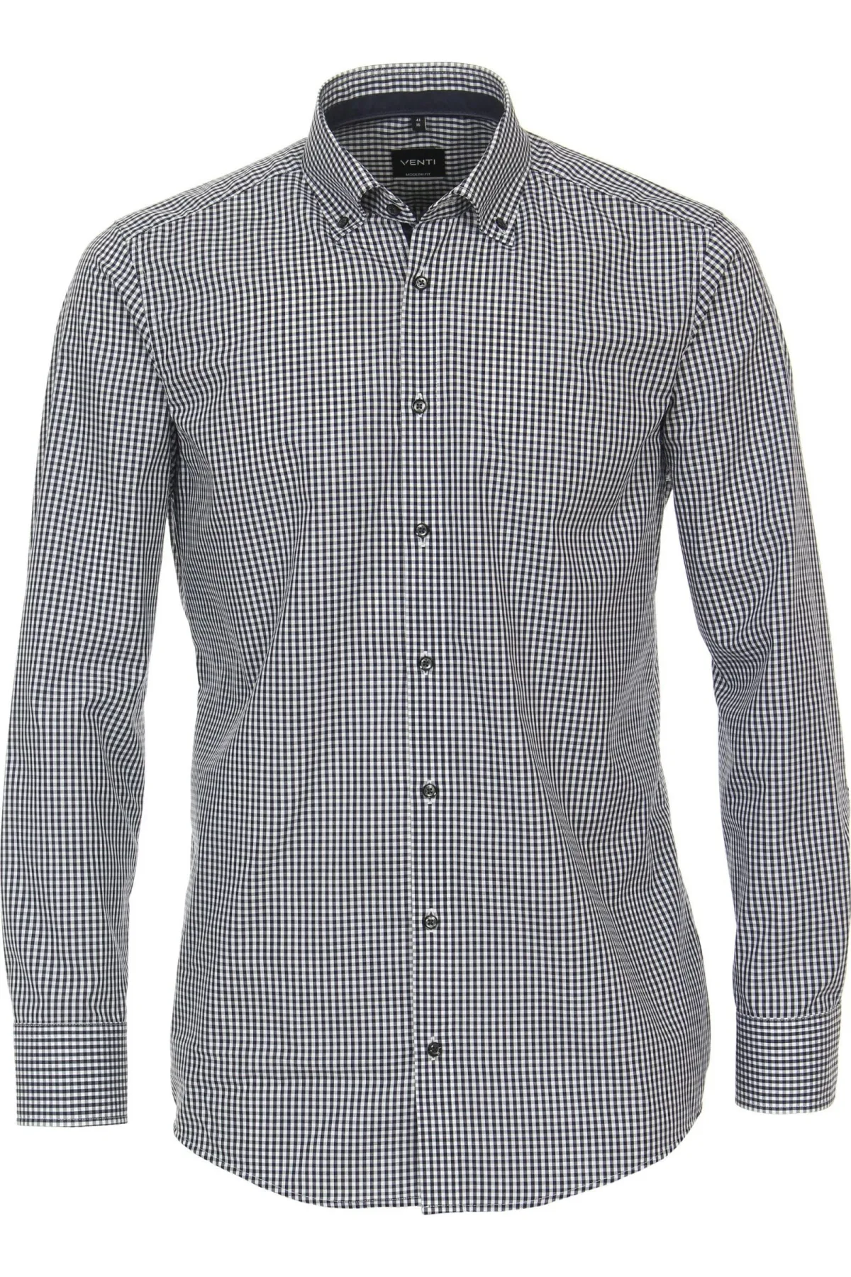 VENTI modern fit overhemd popeline blauw met wit geruit Strijkvriendelijk...