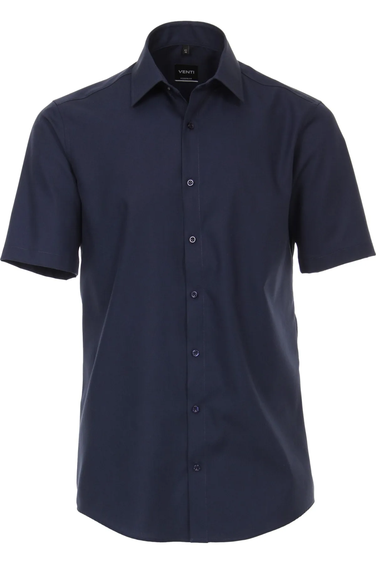 VENTI modern fit overhemd korte mouw popeline blauw Strijkvriendelijk Boord