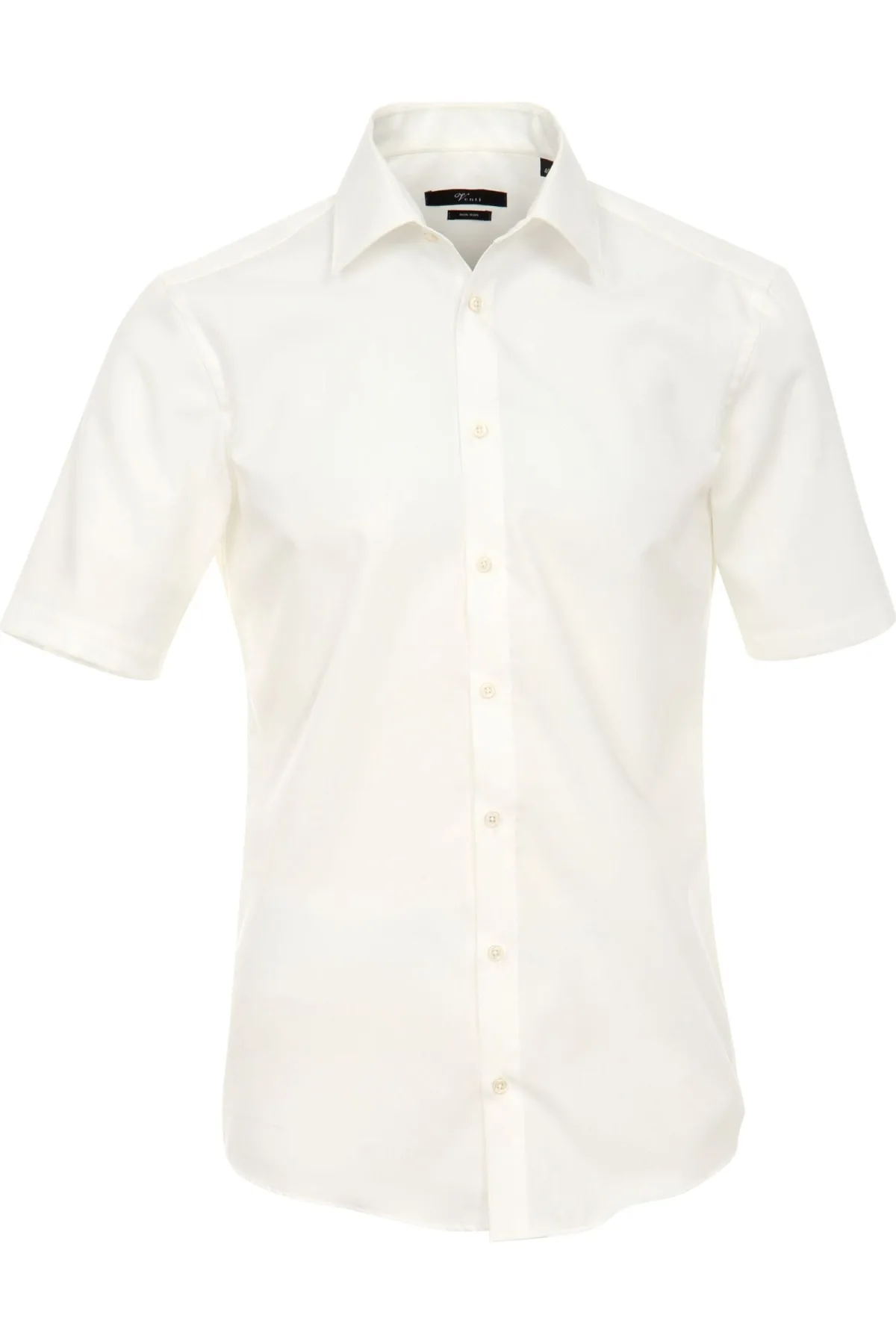 VENTI modern fit overhemd korte mouw popeline beige Strijkvrij Boord
