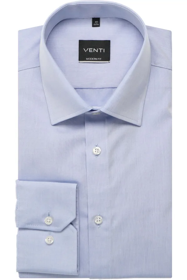 VENTI modern fit overhemd mouwlengte 7 lichtblauw Strijkvrij Boord