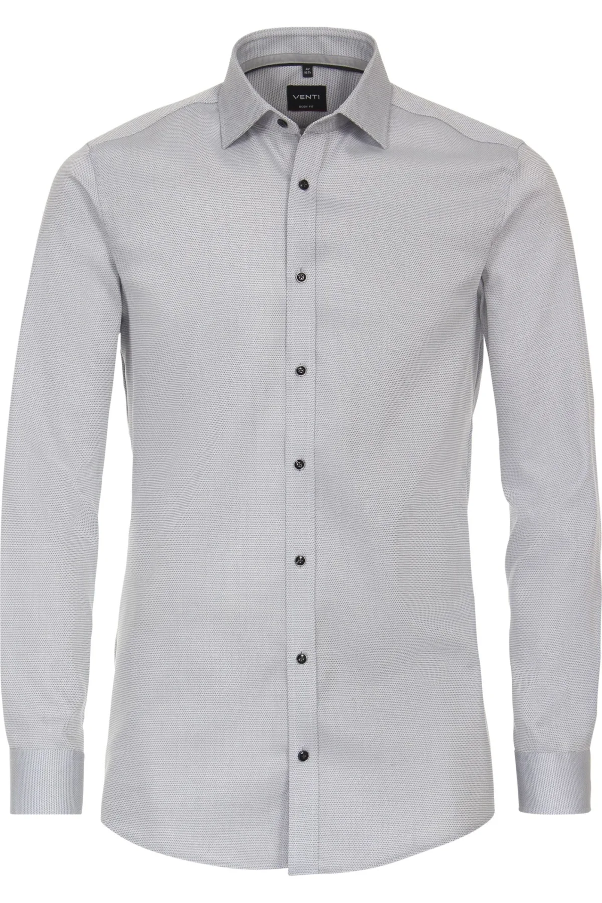 VENTI body fit overhemd dobby grijs Strijkvriendelijk Boord