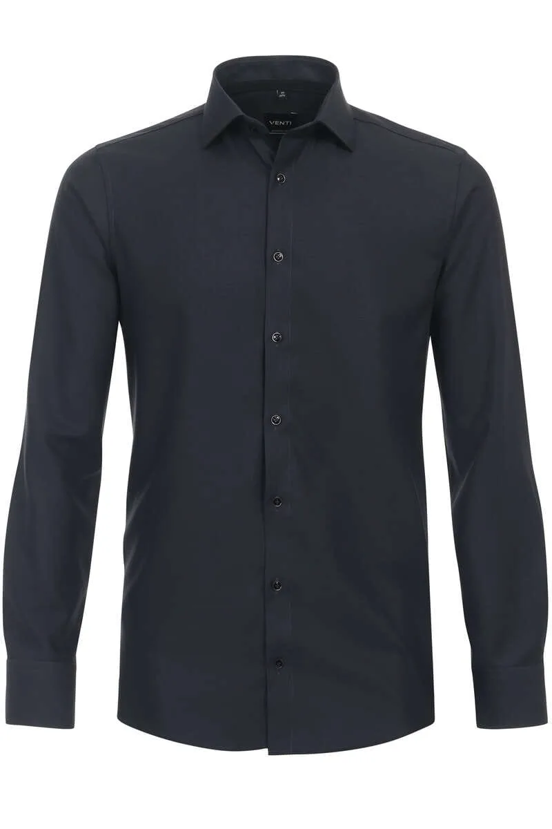 VENTI modern fit overhemd structuur zwart Strijkvriendelijk Boord