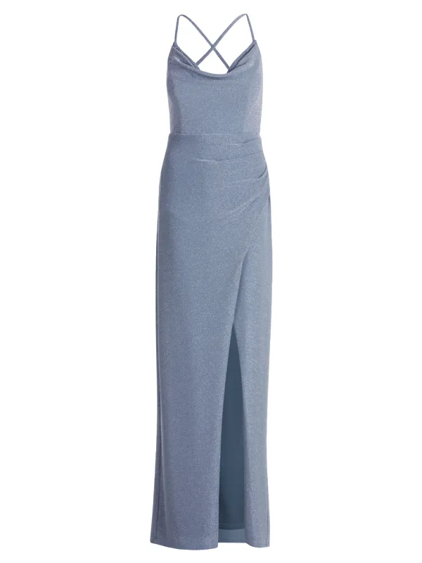 Design: Beenopening; Type sluiting: Ritssluiting; Halstype: Watervalhals; Motief: Effen; Soort bandjes: Spaghettibandjes; Details: Gedrapeerd; Extra's: Met textuur; Lengte: Lang/maxi; Snit: Figuur omarmend; Pasvorm: Aansluitende pasvorm; Armlengte: Mouwloos
