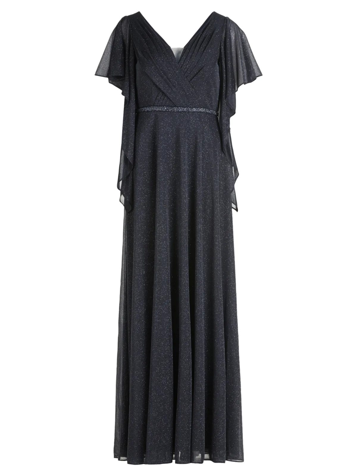 dames maxi-jurk van Vera Mont;glitterlook;Getailleerde pasvorm;V-hals;plooienlook;volantmouwen;met siersteentjes;ruglengte bij maat 38: 133 cm;Borstwijdte bij maat 38: 42 cm;mouwlengte bij maat 38: 24 cm