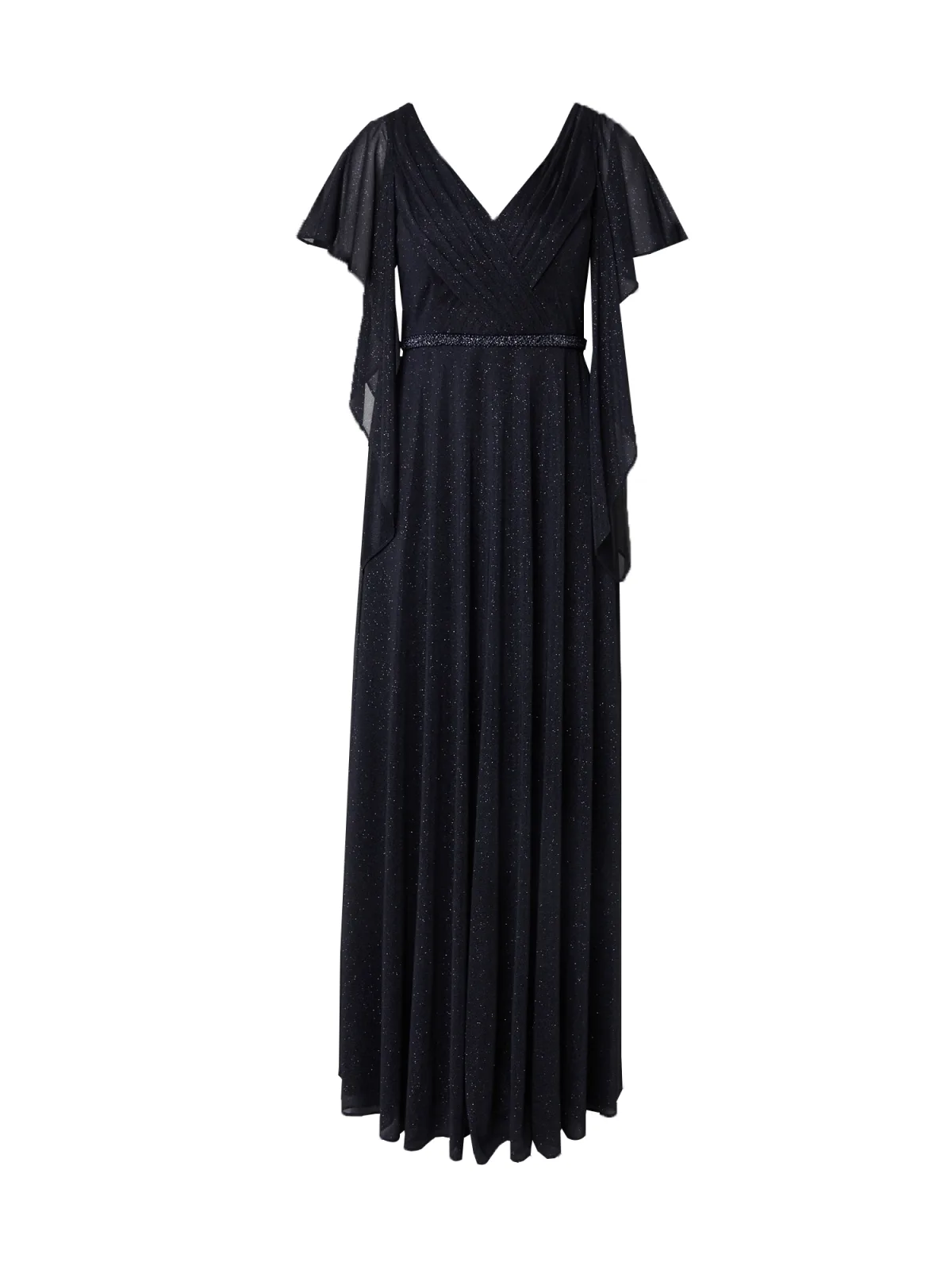Design: Rug rits, Tailleband, Diepe snit/decolleté, Wikkel-look; Type sluiting: Ritssluiting; Halstype: V-hals; Motief: Effen; Details: Plooien, Gedrapeerd; Extra's: Glitterend, Gladde stof; Lengte: Lang/maxi; Snit: Getailleerd; Pasvorm: Normale pasvorm; Armlengte: Kwartmouw