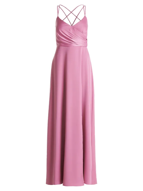 Design: Split, Rug rits; Type sluiting: Ritssluiting; Materiaal: Satijn; Halstype: V-hals; Motief: Effen; Soort bandjes: Spaghettibandjes; Details: Cut-outs, Plooien, Gedrapeerd; Extra's: Voelt aan als zijde; Lengte: Lang/maxi; Snit: Getailleerd; Pasvorm: Normale pasvorm; Armlengte: Mouwloos