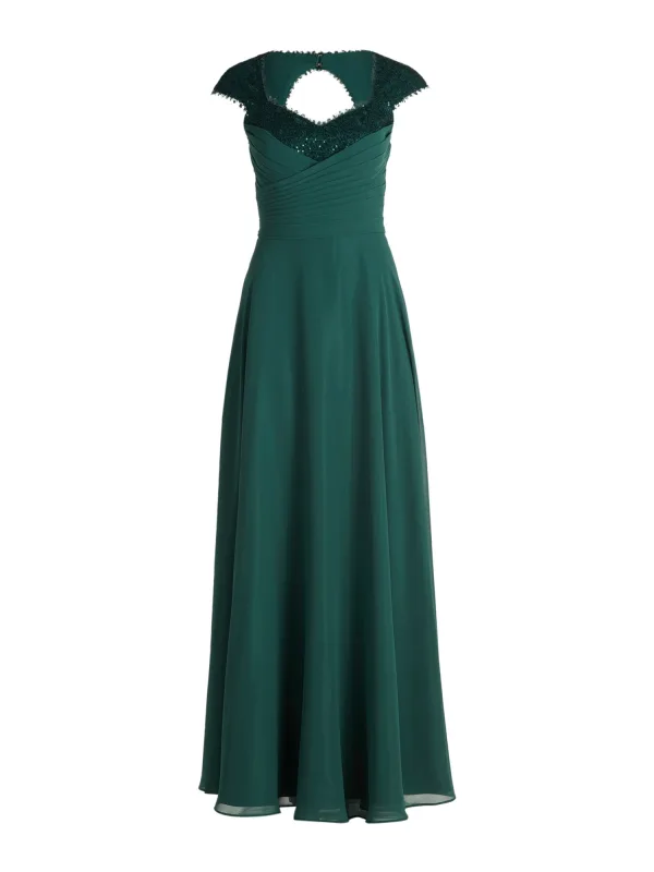 Design: Gevoerde zoom/rand, A-lijn, Rug rits; Type sluiting: Ritssluiting; Materiaal: Gerecycled materiaal; Motief: Effen; Details: Pailletten, Borduursels, Plooien; Extra's: Glitterend, Lichte stof; Lengte: Lang/maxi; Snit: Getailleerd; Pasvorm: Normale pasvorm; Armlengte: Kwartmouw
