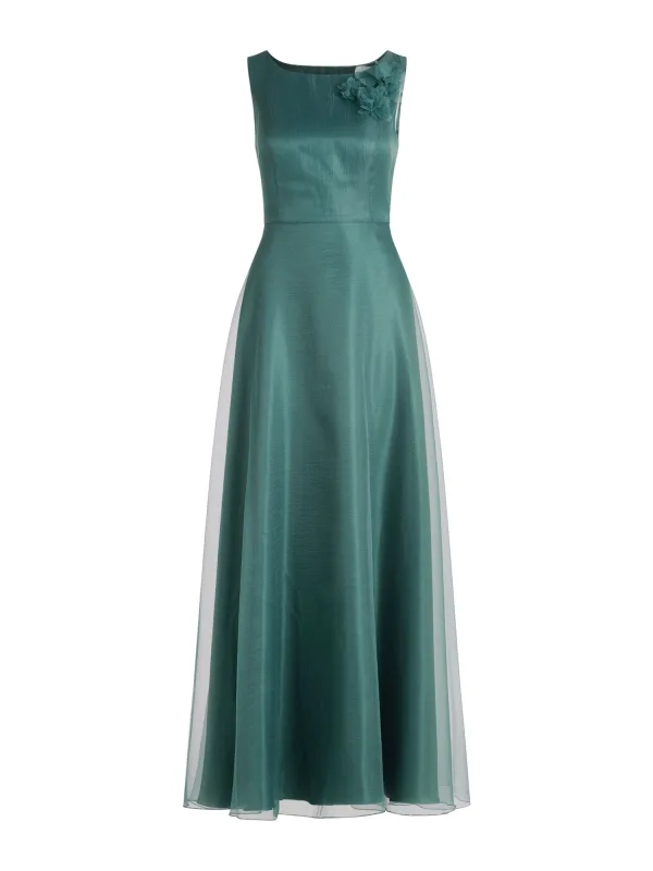 Dames avondjurk van Vera Mont;structuurpatroon;Getailleerde pasvorm;Bloemenprint siergarnering;A-lijn;Mouwloos design;ronde hals;ruglengte bij maat 36: 140 cm;borstwijdte bij maat 36: 42 cm