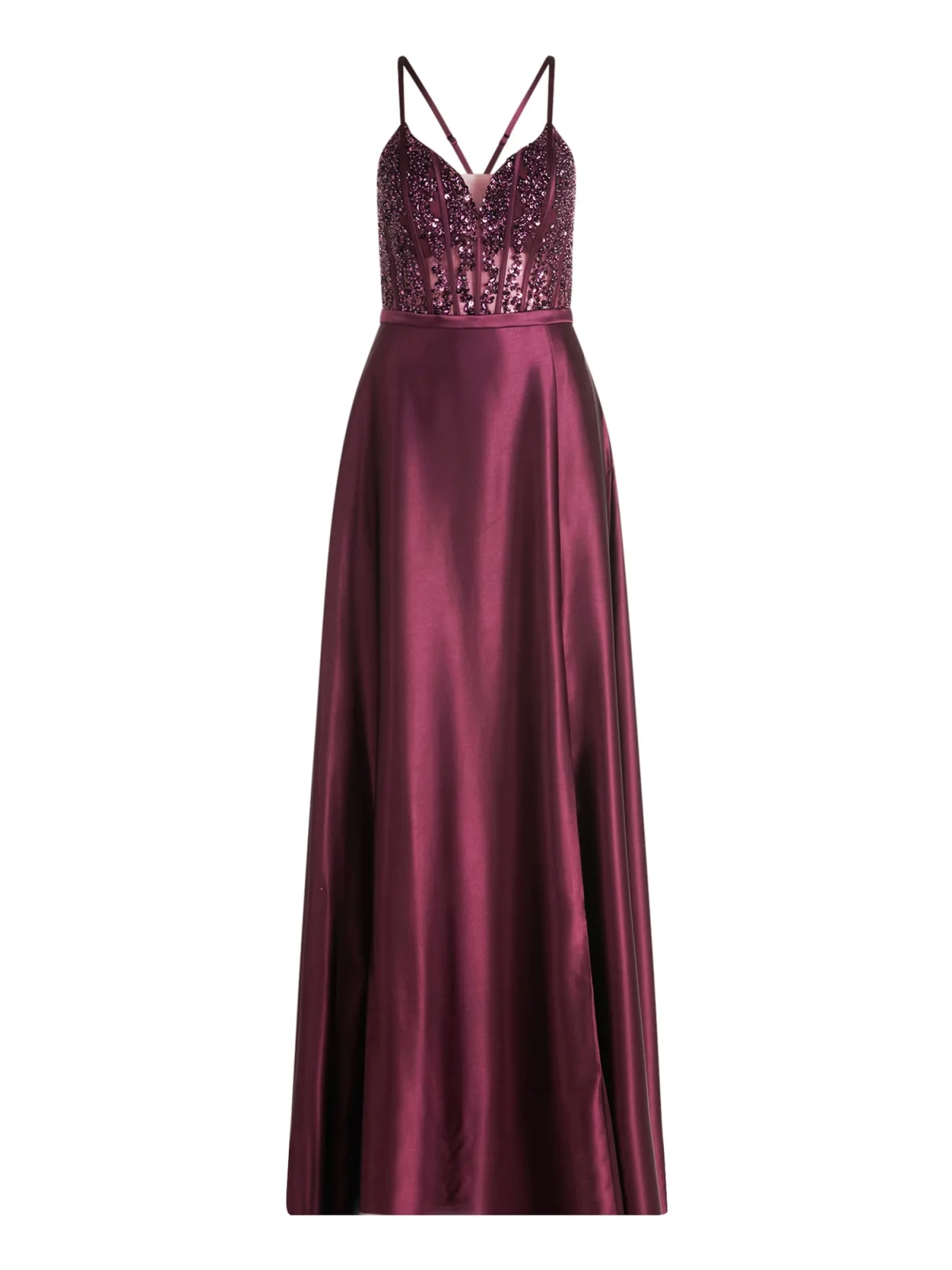 Design: Nepzakken; Type sluiting: Ritssluiting; Halstype: V-hals; Motief: Effen; Soort bandjes: Spaghettibandjes; Details: Sierstenen, Backless; Extra's: Op staal naden; Lengte: Lang/maxi; Pasvorm: Normale pasvorm; Armlengte: Mouwloos