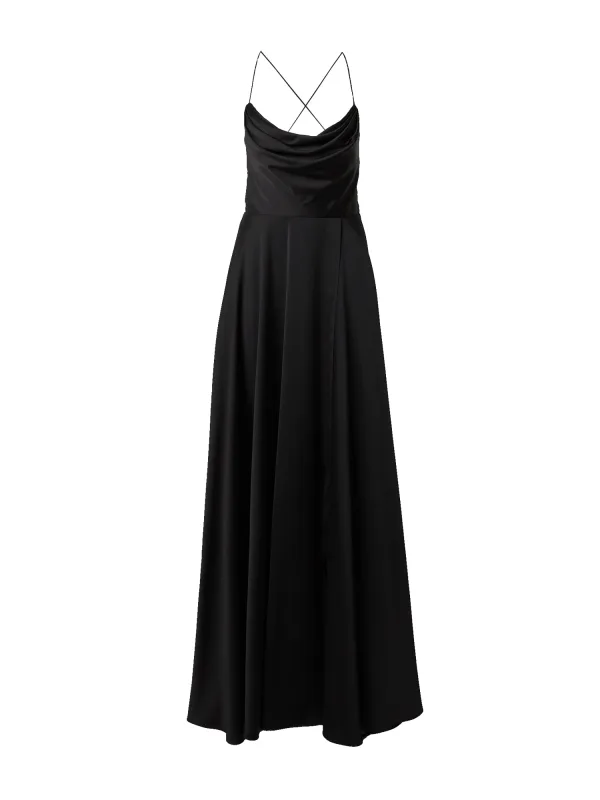 Design: Flare, Beenopening, Vetering, Om te knopen/binden; Type sluiting: Ritssluiting; Materiaal: Satijn; Halstype: Watervalhals; Motief: Effen; Soort bandjes: Spaghettibandjes; Details: Gedrapeerd; Extra's: Gladde stof, Buigzame grip; Lengte: Lang/maxi; Snit: Uitlopend; Pasvorm: Normale pasvorm; Armlengte: Mouwloos