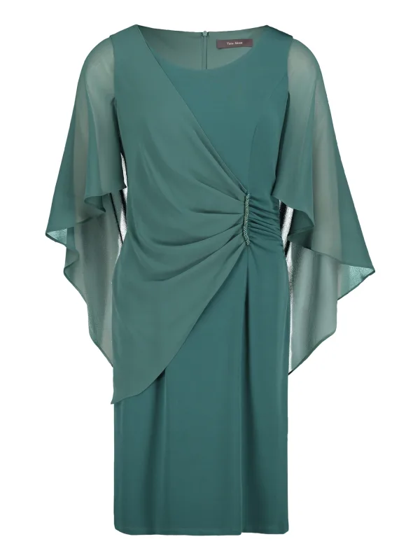 Cocktailjurk van Vera Mont;Elastische materiaalmix;Nauwsluitende pasvorm;Ronde hals;Wikkellook;Sierapplicatie met strass-steentjes;Knielang;Naadritssluiting aan de achterkant;Vleermuismouwen van chiffon;Ruglengte bij maat 36: 98 cm;Borstomvang bij maat 36: 108 cm;Mouwlengte bij maat 36: 48 cm