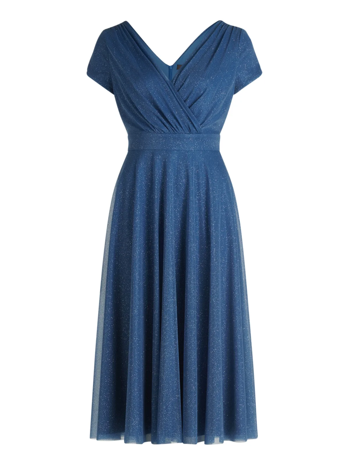 Design: Rechte zoom; Type sluiting: Ritssluiting; Halstype: V-hals; Motief: Effen; Details: Gedrapeerd; Extra's: Glinsterend, Gladde stof; Lengte: 3/4 lengte; Snit: Getailleerd; Pasvorm: Normale pasvorm; Armlengte: Kwartmouw