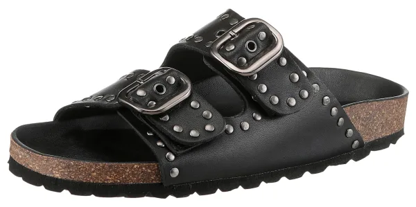 Design: Anatomisch gevormd voetbed, Profielzolen, Zool van kurk, Gesp; Type sluiting: Slip; Materiaal: Leer; Motief: Effen; Materiaal: Glad leer; Schoenneus: Open toe; Extra's: Studs, Anti-slip zool, Flexibele zool; Hakhoogte: Platte hak (0-3 cm)
