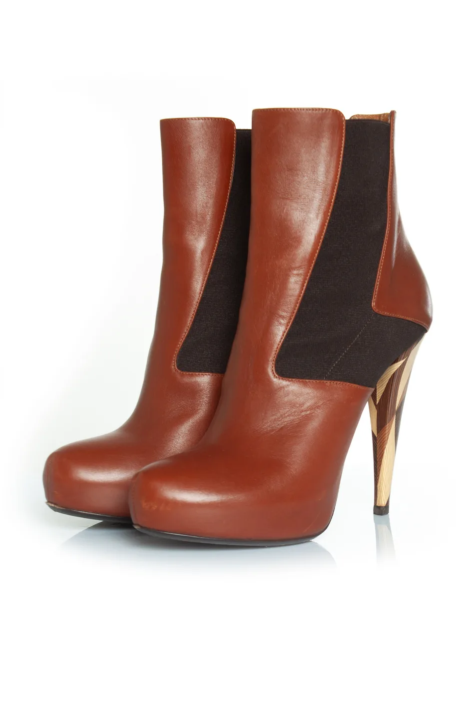 VINTAGE, RRP ALS NIEUW Fendi, verborgen plateau laarzen van cognackleurig leer. In goede staat met enkele kleine deukjes en krassen. STAAT: goede staat MAAT: 38 BINNENZOOMMAAT: 25 cm HEELMAAT: 12 cm PLATEAU: 2 cm SCHOENSHACHT: 13 cm BOVENWIDTH: 10 cm MATERIAAL: leer KLEUR: cognac
