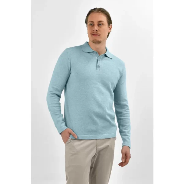 Het lichtblauwe poloshirt met lange mouwen is de perfecte balans tussen stijl en comfort. Gemaakt van hoogwaardige, zachte gebreide stof, biedt dit shirt niet alleen comfort maar ook een luxe uitstraling.