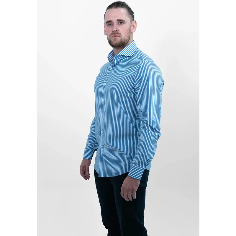 Vercate Overhemd Donkerblauw Blauw Gestreept Cool Technology Slim Fit Lange...
