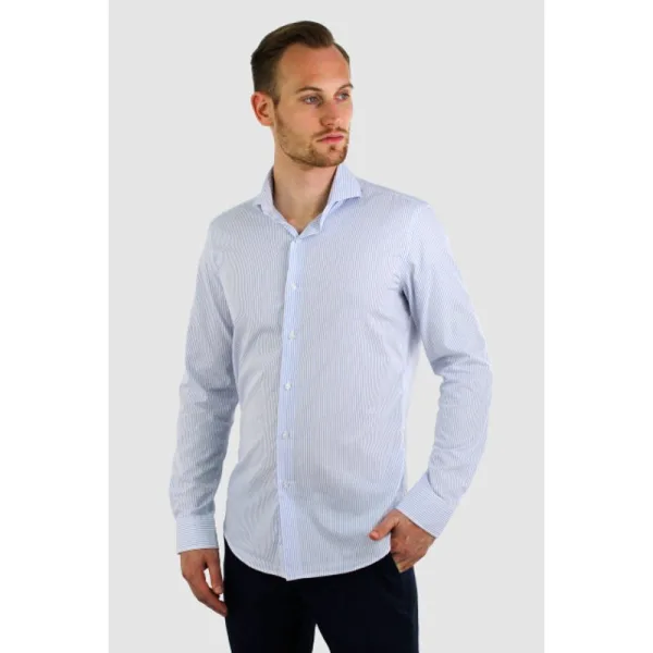 Dit overhemd geeft je een frisse en stijlvolle uitstraling. Met zijn heldere witte kleur en subtiele blauwe strepen voeg je moeiteloos wat verfijning toe aan je outfit. Of je het overhemd nu draagt voor formele gelegenheid of gewoon casual, dit overhemd laat je er altijd op je best uitzien.
