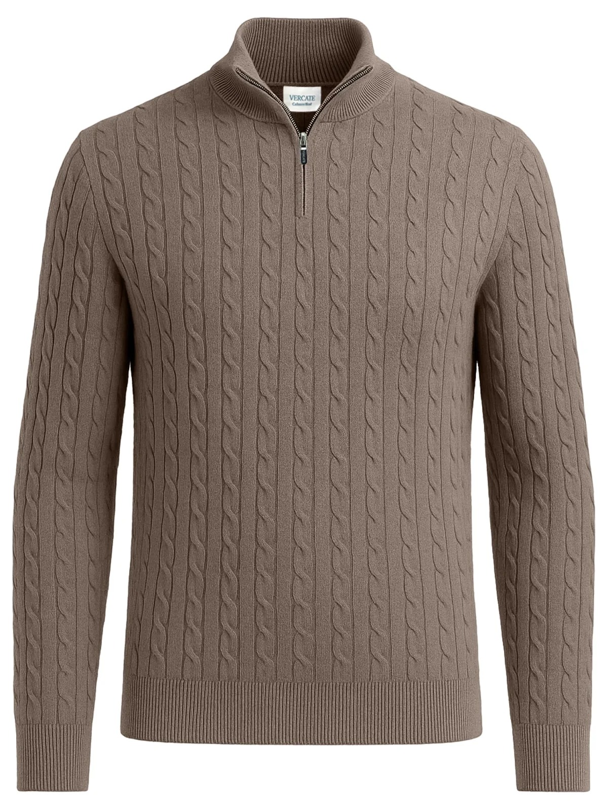 - Bij bol.com kun je Vercate - Quarter Zip / Half Zip Trui - Cashmere / Kasjmier Blend - Kabeltrui / Pullover - Regular Fit - Taupe / Bruin - Maat XXL kopen voor slechts €89,95 , dat is 14% goedkoper dan bij ABOUT YOU (€104,95).
