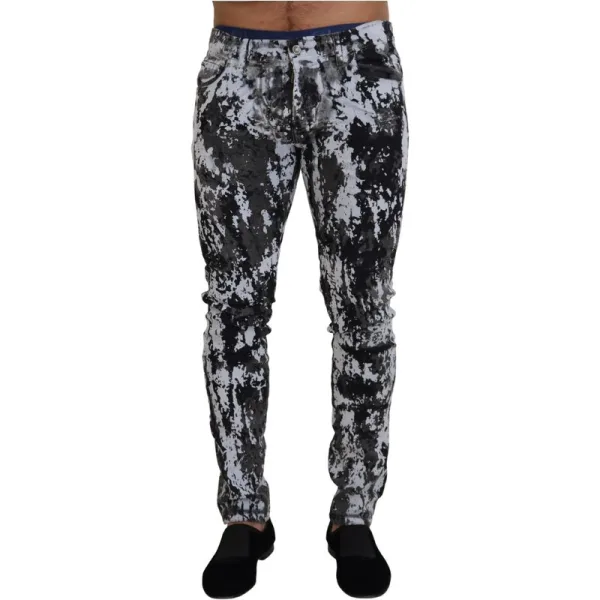Stap naar buiten, val op en eigendom het moment. Deze skinny jeans van Dolce & Gabbana maken een gedurfde statement met ultiem comfort. De unieke zwart-wit spetterprint zorgt ervoor dat je de aandacht trekt, terwijl de comfortabele denim van katoenmix perfect is voor de gehele dag. De skinny pasvorm biedt een moderne silhouet, en het vijf-pocket ontwerp zorgt voor klassieke functionaliteit. Ervaar de flair van design en moeiteloze stijl. Deze jeans integreren naadloos in je dagelijkse garderobe en voegen direct een randje toe aan elke outfit.