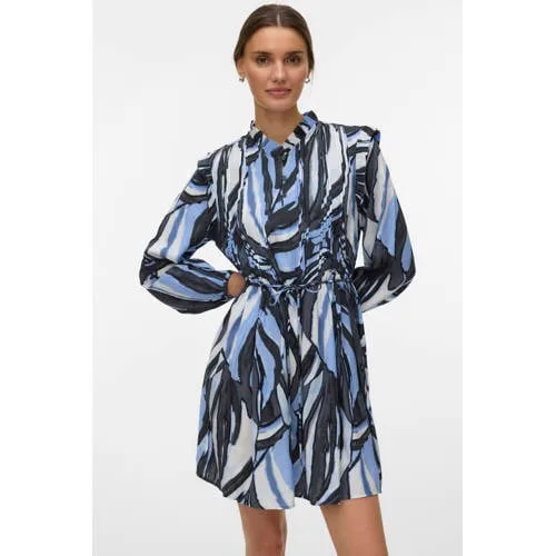 Fris, vrouwelijk en makkelijk te combineren, deze VERO MODA jurk 'Vmvera Violet Ls Short Dress Wvn Ga' is een lichte toevoeging aan je garderobe. De blauwe kleur met all over print geeft direct een moderne uitstraling, terwijl de korte lengte en A-lijn pasvorm zorgen voor een soepel silhouet. Gemaakt van geweven viscose, waardoor de stof luchtig aanvoelt en mooi langs het lichaam valt.Blauwe A-lijn jurk met subtiele details A-lijn model en korte lengte voor een speelse, vrouwelijke look Lange rechte mouwen voor extra bedekking en een rustige belijning Opstaande kraag met knoopsluiting voor een nette, moderne halslijn All over print in blauw als stijlvol accent Gemaakt van geweven viscose, voelt licht en soepel aan Geen zakken voor een strakke, minimalistische afwerking Maatadvies: dit artikel valt normaalVeelzijdig voor werk en vrije tijdDeze korte A-lijn jurk draag je net zo makkelijk naar kantoor als in je vrije tijd. Met een panty en enkellaarsjes ontstaat een geklede set, terwijl sneakers de outfit een meer casual karakter geven. De opstaande kraag en lange mouwen maken de jurk ook geschikt voor tussenseizoenen.VERO MODA als vertrouwde basisVERO MODA staat bekend om toegankelijke mode met een eigentijdse uitstraling. De collecties zijn ontworpen met oog voor draagbaarheid en trends, zodat je eenvoudig outfits samenstelt die passen bij je dagelijks leven.Een lichte, blauwe jurk waar je het hele seizoen plezier van hebt.