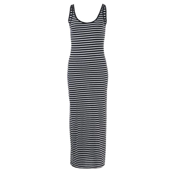Vero Moda Anna-maxi-jurk voor dames in zwart en wit. - U-halslijn - Regular fit - Mouwloos - Biologische katoenmix - All-over streep - Schouder tot zoom circa 141 cm. - 60% katoen, 40% polyester. Wasmachinebestendig - Ref: 10233347 Afmetingen zijn bedoeld als richtlijn