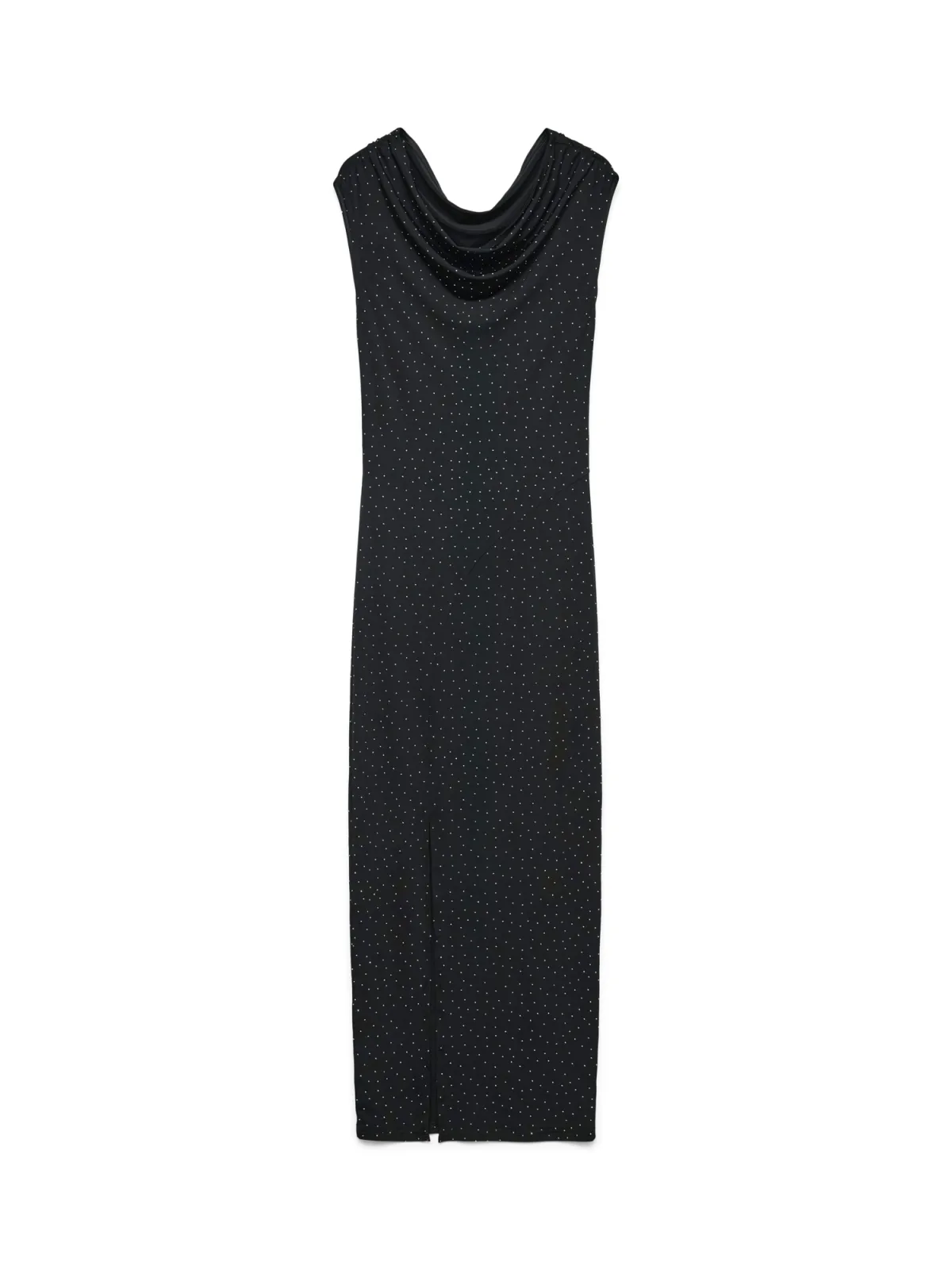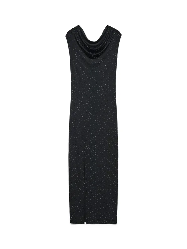 Design: Beenopening, Getailleerd model; Materiaal: Gerecycled materiaal; Halstype: Watervalhals; Motief: Gestippeld; Details: Sierstenen, Gedrapeerd; Extra's: Applicaties, Milieuvriendelijk geproduceerd; Lengte: Lang/maxi; Snit: Getailleerd; Pasvorm: Slanke pasvorm; Armlengte: Kwartmouw