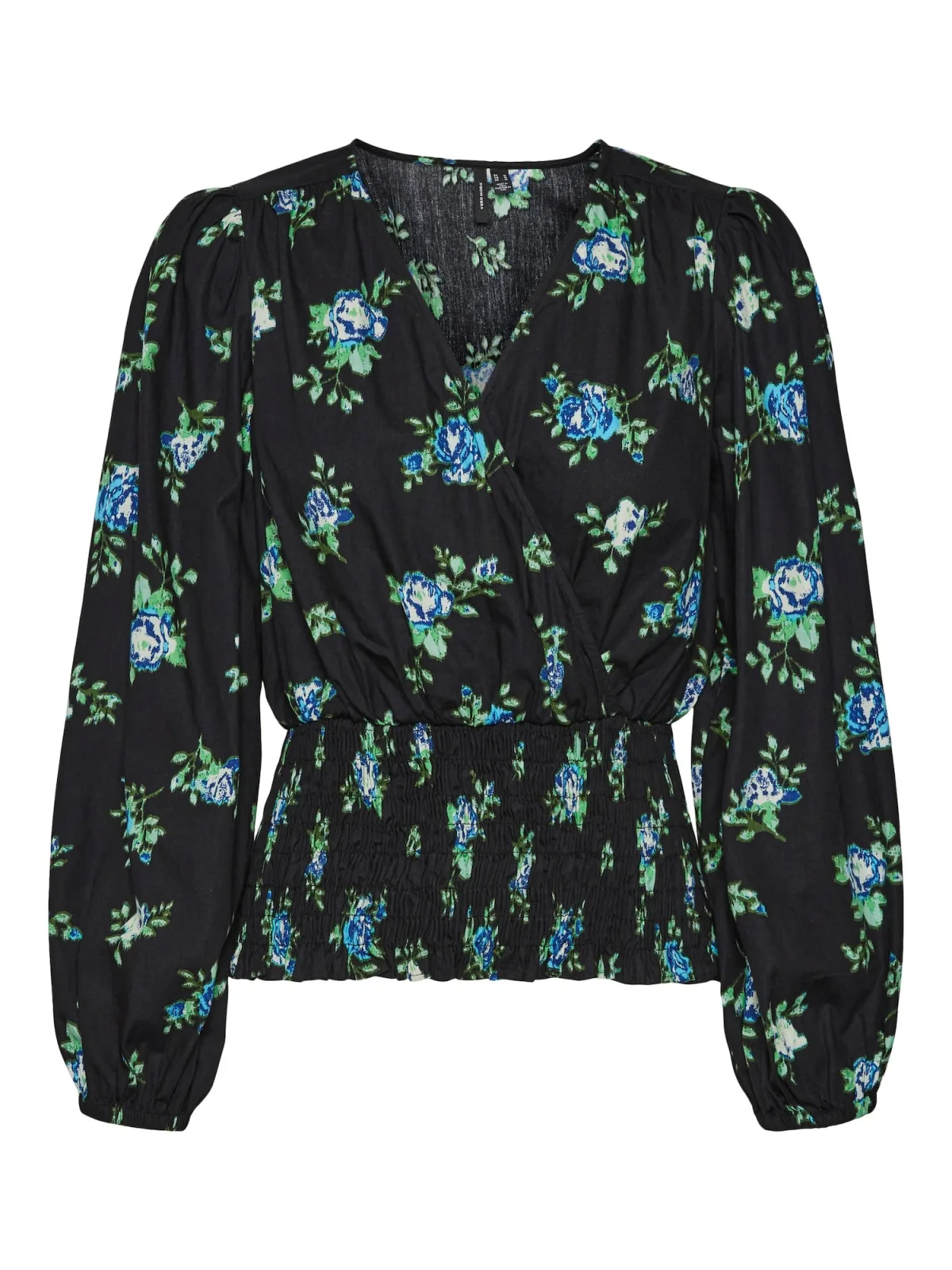 Blouse type: Blouseshirt; Design: Elastische taille/zoom, Pofmouwen, Diepe snit/decolleté; Materiaal: Katoen; Motief: Bloemenprint; Kraag: Zonder kraag; Details: Gedrapeerd, Wikkel design; Extra's: All-over patroon, Voelt zacht aan; Pasvorm: Slanke pasvorm; Armlengte: Lange mouw; Lengte: Normale lengte