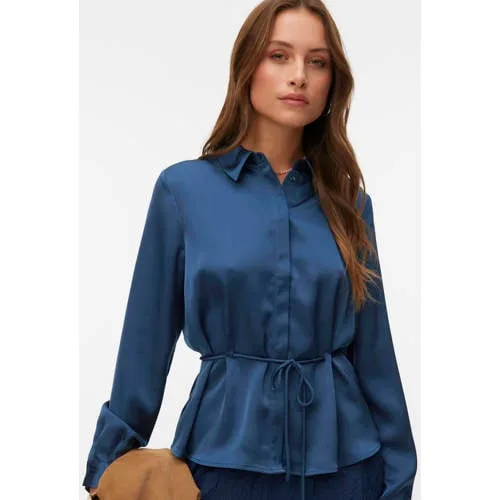 Deze VERO MODA blouse dames is een praktische basis die past bij verschillende momenten op de dag. De blouse heeft een rechtvallende pasvorm en lange mouwen die langs het lichaam vallen. De klassieke kraag en doorlopende knoopsluiting zorgen voor een nette uitstraling. Door de effen kleur combineer je de blouse gemakkelijk met een pantalon, rok of jeans. Het materiaal van 100% polyester voelt licht aan en helpt de vorm van de blouse goed te behouden.Stijlvolle details in een helder ontwerp Rechtvallende pasvorm voor een verzorgd silhouet Lange mouwen met knoopsluiting bij de manchetten Klassieke kraag met volledige knoopsluiting aan de voorkant Effen kleur die goed te combineren is met diverse onderstukken Gemaakt van 100% polyester voor een licht en vormvast materiaal Afneembare ceintuur in de taille voor extra accent op de bovenlijn Zonder borstzakken voor een rustig voorpand Vallen volgens de gebruikelijke maatVan werkdag tot vrije tijdMet de afneembare ceintuur wissel je eenvoudig tussen een rechte vorm en een meer getailleerd model. Draag de blouse los over een broek voor een ontspannen stijl of strakker in de taille voor extra nadruk op de bovenlijn. Geschikt voor een werkdag, een diner of een dag in de stad.Vertrouwde stijl van VERO MODAVERO MODA richt zich op moderne dameskleding met heldere lijnen en praktische details. Het merk ontwerpt collecties die aansluiten op actuele trends en tegelijk comfortabel zijn in het dagelijks gebruik.Een blouse die veel combinatiemogelijkheden biedt en prettig aanvoelt tijdens uiteenlopende activiteiten.