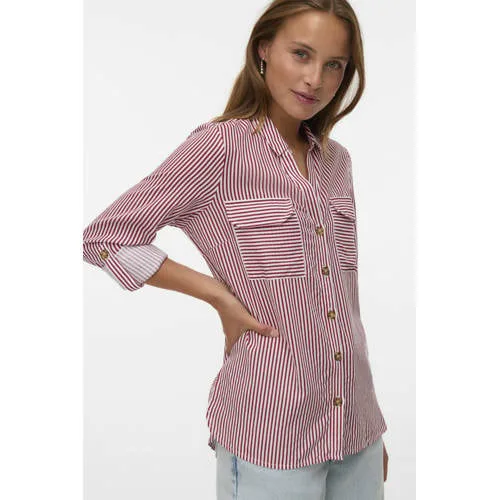 Deze blouse van VERO MODA heeft lange mouwen en een klassieke kraag. De blouse is gemaakt van 100% viscose. Dankzij de knoopsluiting draag je de blouse gemakkelijk, en de borstzakken maken het geheel af.