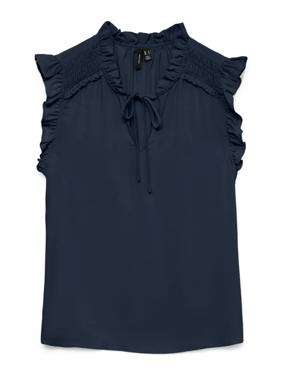 Blouse type: Blouseshirt; Design: Gevoerde zoom/rand, Om te knopen/binden; Materiaal: Viscose; Motief: Effen; Kraag: Zonder kraag; Details: Ruches, Gedrapeerd; Extra's: Op staal naden, Voelt zacht aan; Pasvorm: Normale pasvorm; Armlengte: Mouwloos; Lengte: Normale lengte