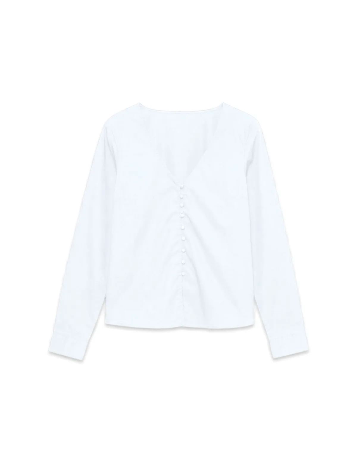 Blouse type: Klassieke blouse; Design: 1-knoops manchetten, Gevoerde zoom/rand, Diepe snit/decolleté; Type sluiting: Knoopsluiting; Materiaal: Katoen; Motief: Effen; Kraag: Zonder kraag; Extra's: Op staal naden, Voelt zacht aan; Pasvorm: Slanke pasvorm; Armlengte: Lange mouw; Lengte: Normale lengte
