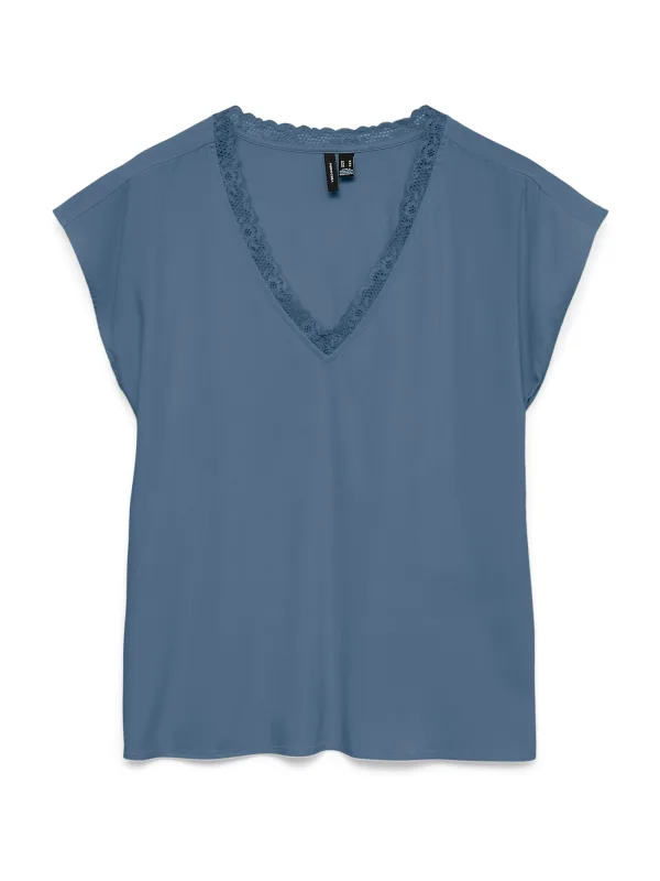 T-shirt van Vero Moda voor dames;Model 'Bella';Look: effen;Pasvorm: Regular fit;Hals: V-hals met kant;Mouwvorm: korte mouwen;Materiaalverwerking: Jersey-stretch;Materiaal: Viscosemix