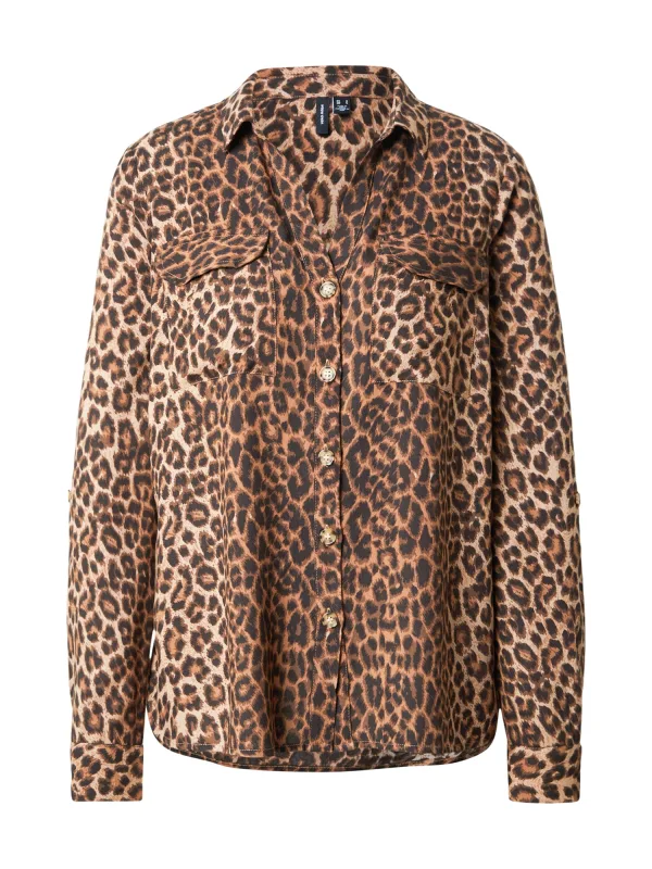 VERO MODA Blouse ‘VMBUMPY’ bruin / lichtbruin / donkerbruin