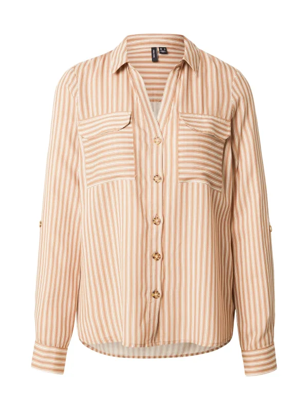 VERO MODA Blouse ‘VMBUMPY’ donkerbeige / wit Prijzen