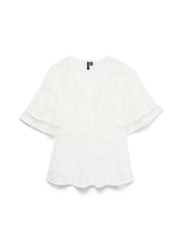 Blouse type: Blouseshirt; Design: Gevoerde zoom/rand; Materiaal: Gerecycled materiaal; Motief: Effen; Kraag: Zonder kraag; Details: Kant, Volant; Extra's: Met textuur; Pasvorm: Normale pasvorm; Armlengte: Kwartmouw; Lengte: Normale lengte