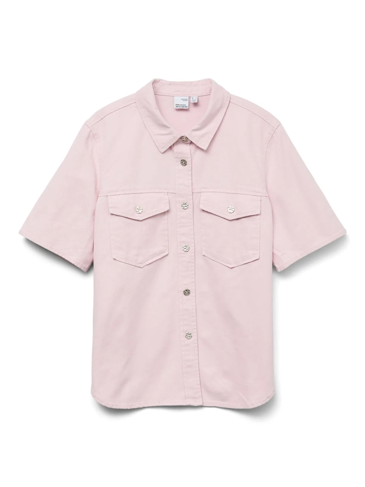 Blouse type: Blouseshirt; Design: Borstzak, Knop sluiting; Materiaal: Denim; Motief: Effen; Kraag: Kentkraag; Extra's: Op staal naden; Pasvorm: Normale pasvorm; Armlengte: Halve mouw; Lengte: Normale lengte