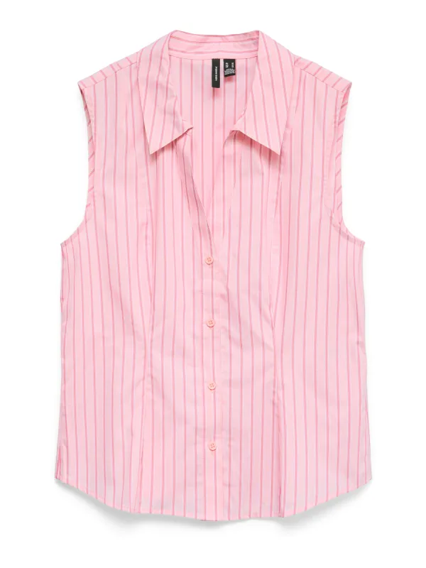 Blouse type: Klassieke blouse; Design: Placket, Ronde zoom; Type sluiting: Knoopsluiting; Materiaal: Katoen; Motief: Gestreept; Extra's: All-over patroon, Voelt zacht aan; Pasvorm: Normale pasvorm; Armlengte: Mouwloos; Lengte: Normale lengte