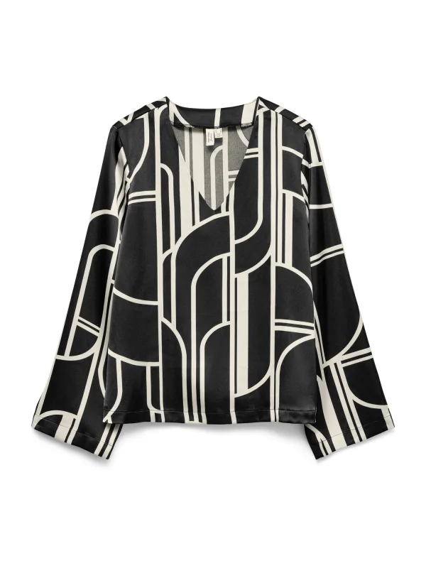 Blouse type: Blouseshirt; Design: Recht model, Diepe snit/decolleté; Materiaal: Gerecycled materiaal; Kraag: Zonder kraag; Extra's: All-over patroon, Gladde stof; Pasvorm: Normale pasvorm; Armlengte: Lange mouw; Lengte: Normale lengte