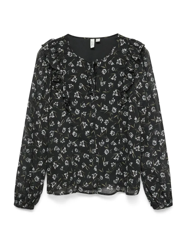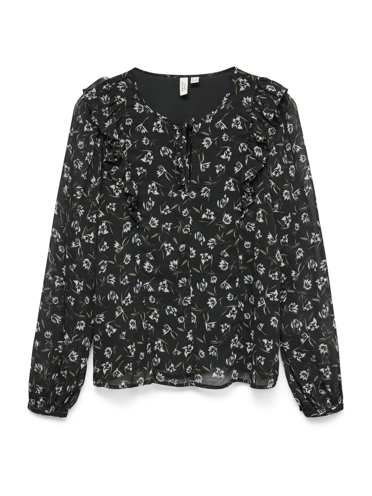 Blouse type: Blouseshirt; Design: Gevoerde zoom/rand; Materiaal: Gerecycled materiaal; Motief: Bloemenprint; Kraag: Zonder kraag; Details: Ruches; Extra's: All-over patroon; Pasvorm: Normale pasvorm; Armlengte: Lange mouw; Lengte: Normale lengte