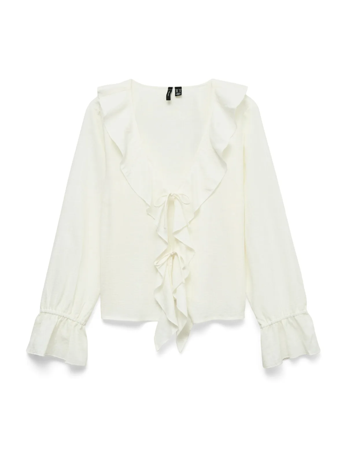 Blouse type: Klassieke blouse; Design: Trompetmouwen, Om te knopen/binden; Materiaal: Katoen; Motief: Effen; Details: Volant, Gedrapeerd; Extra's: Op staal naden, Voelt zacht aan; Pasvorm: Normale pasvorm; Armlengte: Lange mouw; Lengte: Normale lengte