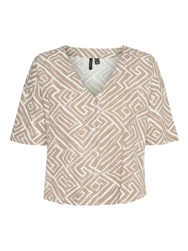 VERO MODA Blouse ‘VMJESMILO’ donkerbeige / wit Prijzen