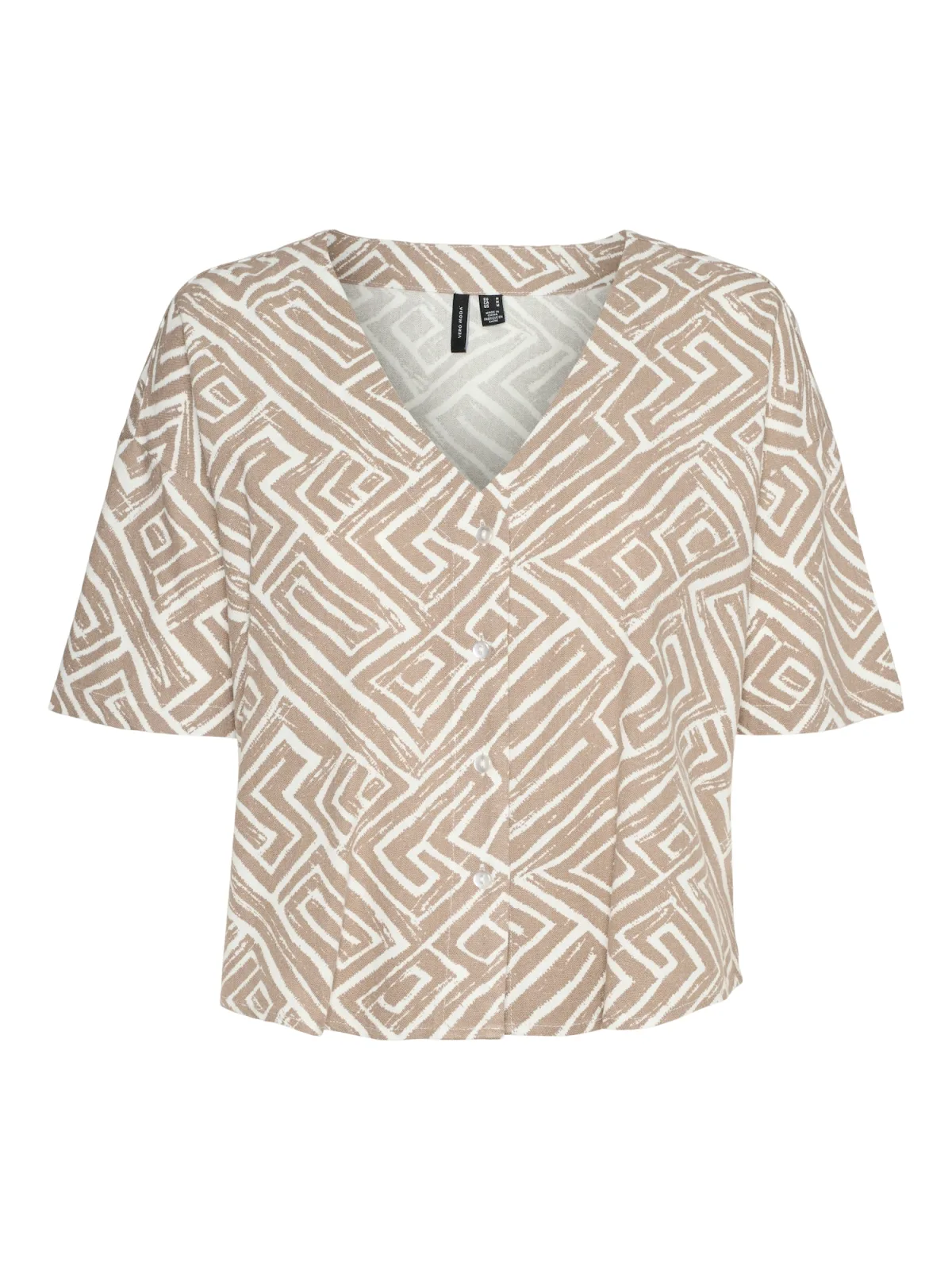 VERO MODA Blouse ‘VMJESMILO’ donkerbeige / wit