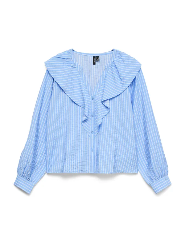 VERO MODA Blouse ‘VMKAJA’ lichtblauw / wit Prijzen