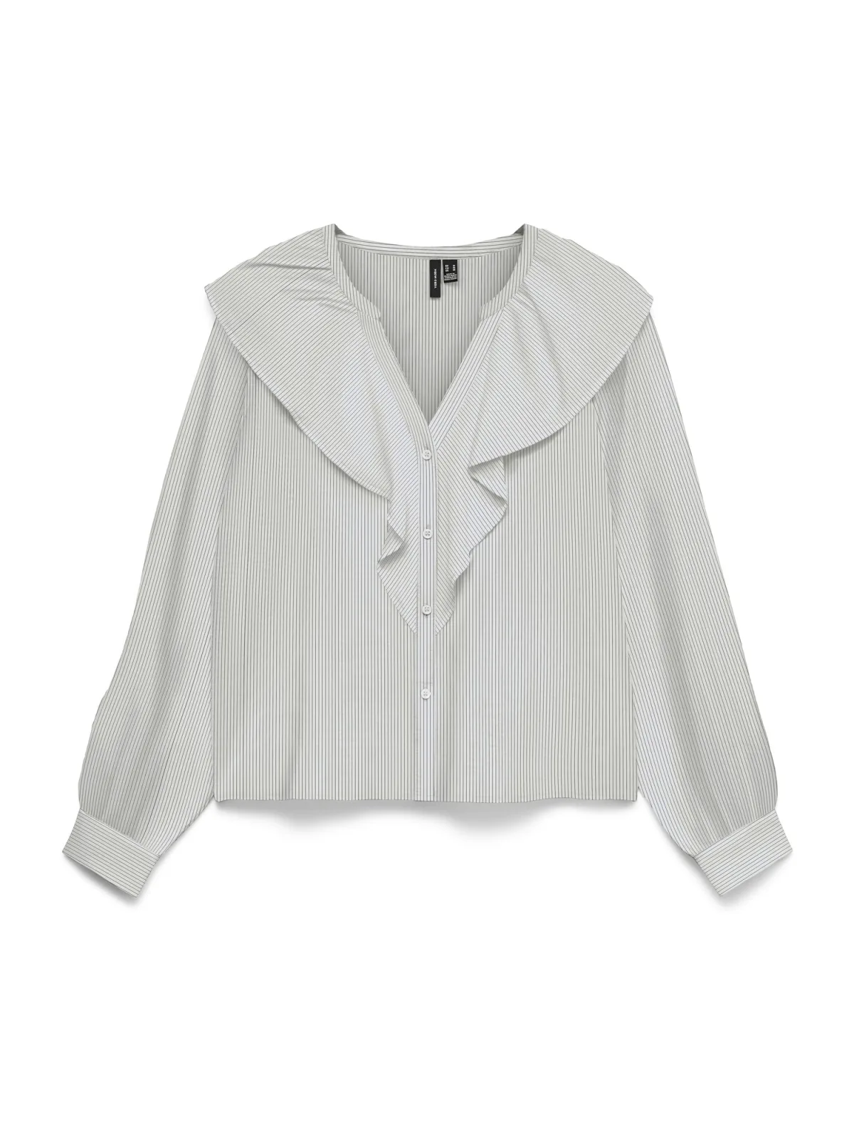 Blouse type: Klassieke blouse; Design: 1-knoops manchetten, Placket; Type sluiting: Knoopsluiting; Materiaal: Viscose; Motief: Gestreept; Kraag: Tuniek kraag; Details: Volant, Gedrapeerd; Extra's: All-over patroon, Lichte stof; Pasvorm: Losse pasvorm; Armlengte: Lange mouw; Lengte: Normale lengte