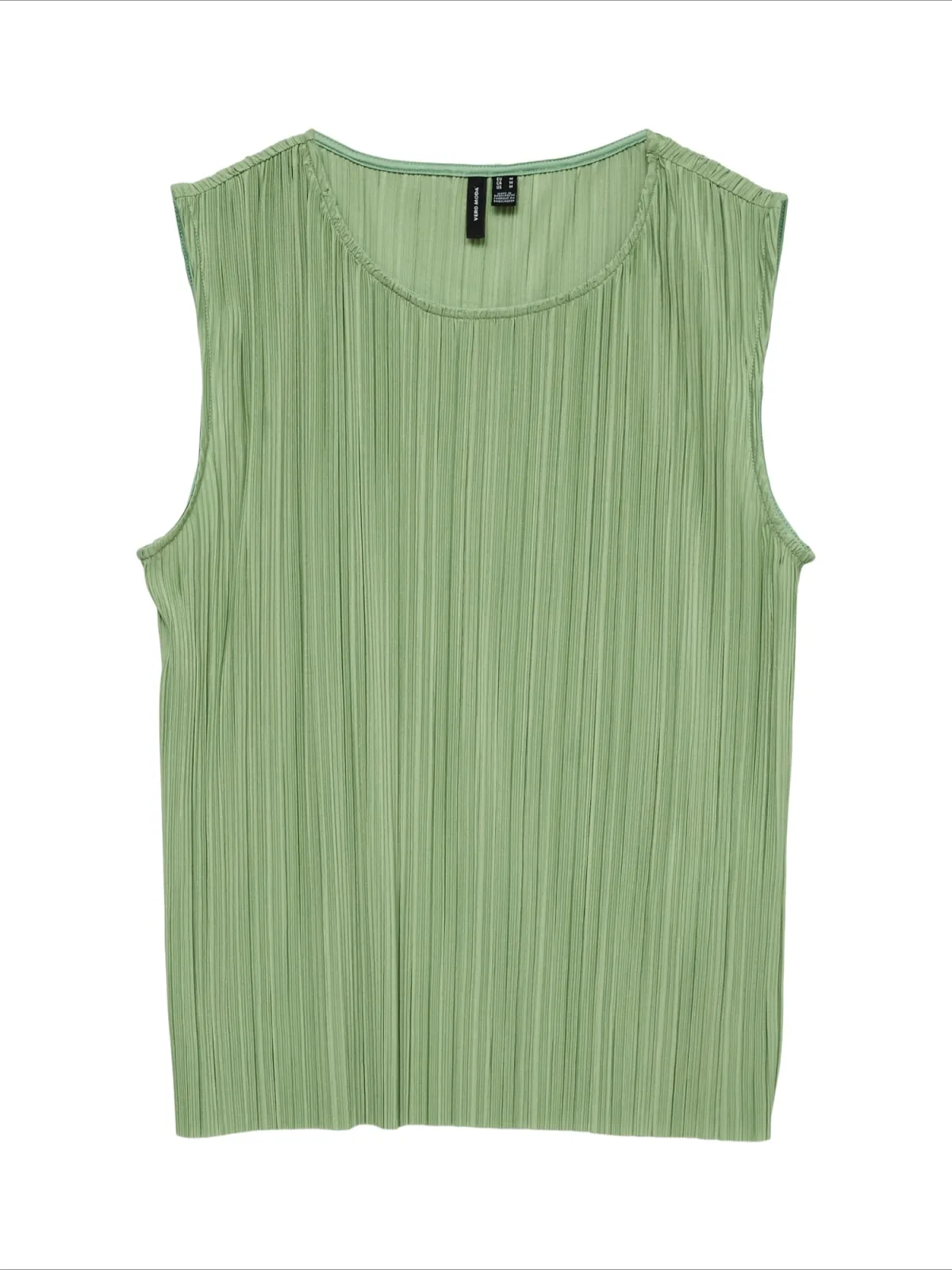 Blouse type: Blouseshirt; Design: Recht model, Open randen; Materiaal: Gerecycled materiaal; Motief: Effen; Kraag: Zonder kraag; Details: Plissé; Extra's: Gladde stof, Milieuvriendelijk geproduceerd; Pasvorm: Normale pasvorm; Armlengte: Mouwloos; Lengte: Normale lengte