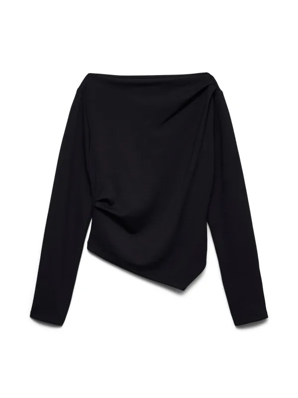 Blouse type: Blouseshirt; Design: Gevoerde zoom/rand, Asymmetrische zoom; Materiaal: Gerecycled materiaal; Halstype: Boothals; Motief: Effen; Kraag: Zonder kraag; Details: Plooien, Gedrapeerd; Extra's: Op staal naden, Milieuvriendelijk geproduceerd; Pasvorm: Normale pasvorm; Armlengte: Lange mouw; Lengte: Normale lengte