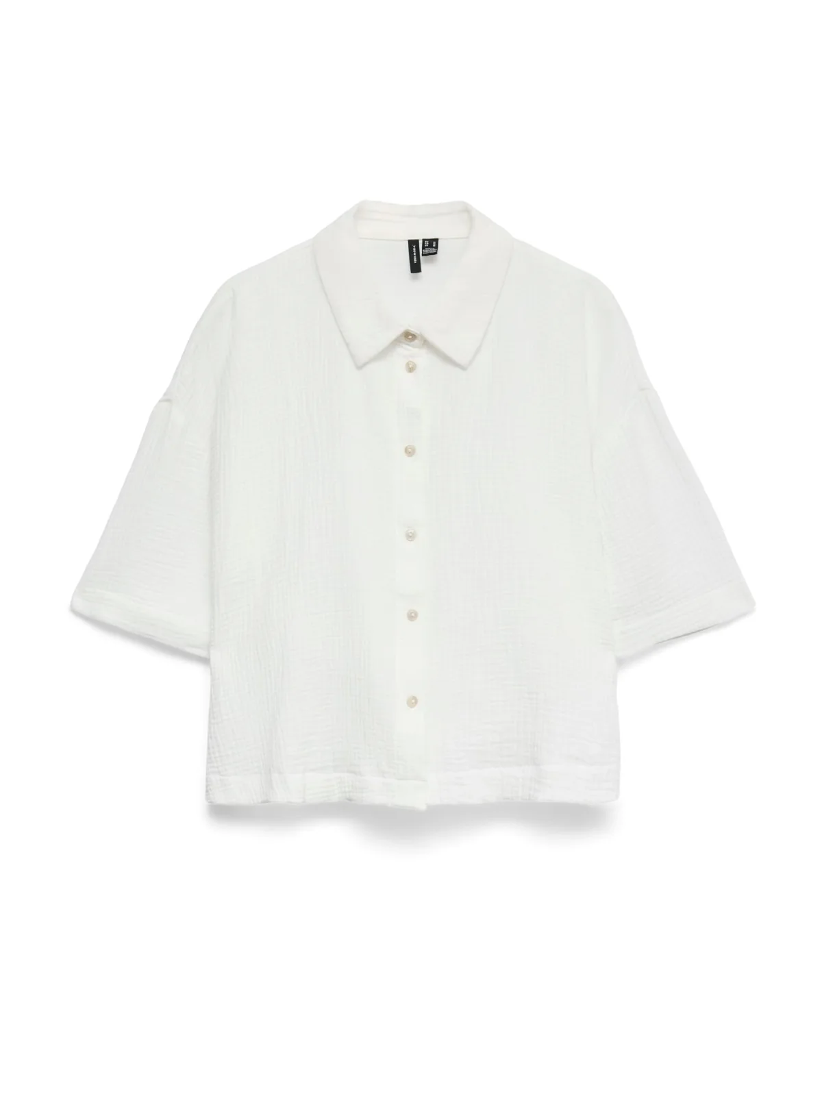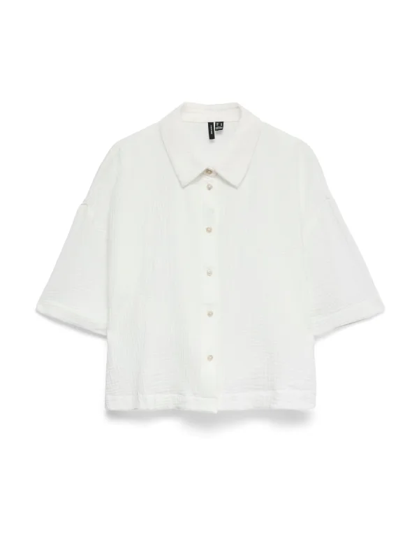 Blouse type: Klassieke blouse; Design: Gevoerde zoom/rand, Placket, Overcut schouder; Type sluiting: Knoopsluiting; Materiaal: Mousseline; Motief: Effen; Kraag: Kentkraag; Extra's: Op staal naden, Voelt zacht aan; Pasvorm: Losse pasvorm; Armlengte: Halve mouw; Lengte: Korte pasvorm