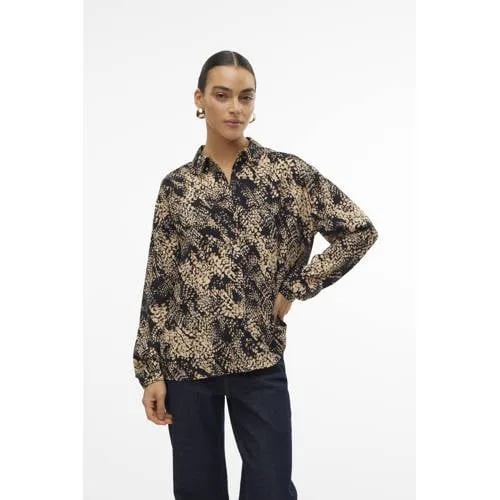 Deze blouse voor dames van VERO MODA is gemaakt van polyester en heeft een grafische print. Het model heeft een klassieke kraag en lange mouwen. De blouse heeft een knoopsluiting.details van deze blouse:stijlnaam: VMOFREYA
